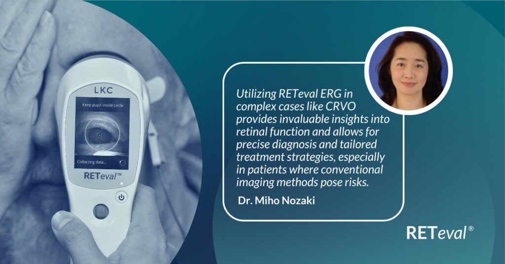 Dr. Miho Nozaki demonstrates the value of RETeval ERG for diagnosing CRVO in complex cases, where conventional testing poses risks.