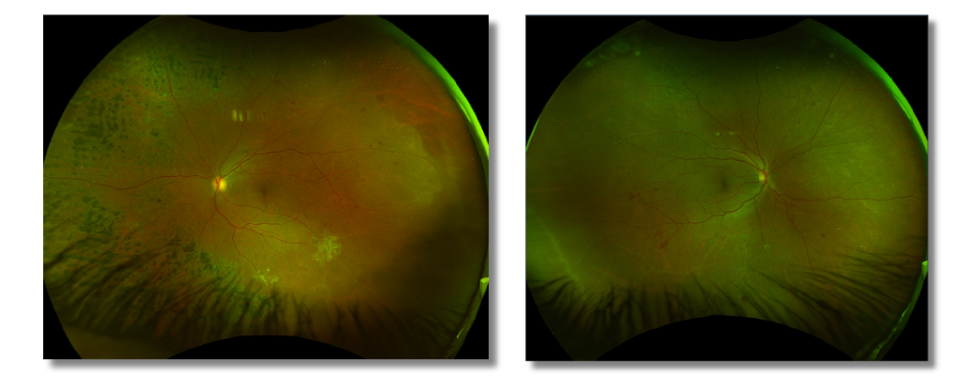 Fundus imaging findings (Figure 2) suggested the need for peripheral laser treatment; however, the signs were mild, and the patient expressed concerns about potential peripheral vision loss associated with PRP. As a result, a RETeval® ERG was requested to evaluate retinal function and help determine the risk of disease progression.