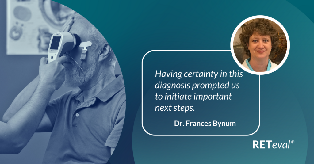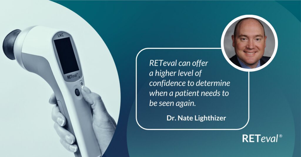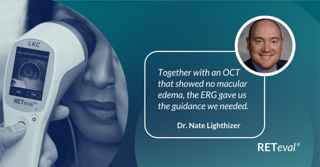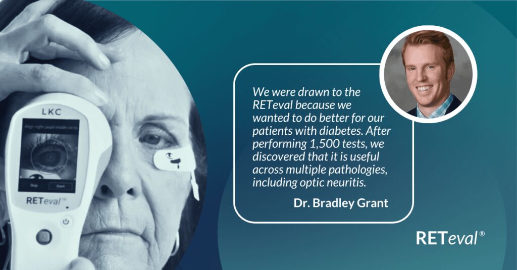 Subjective functional assessments don’t always yield useful information. Bradley Grant, an optometrist in Shelbyville, IL, utilized his RETeval handheld ERG to determine the appropriate follow-up schedule for a patient with multiple sclerosis, while leveraging the easy-to-interpret, objective functional data to educate the patient on the importance of resuming care with their neurologist.